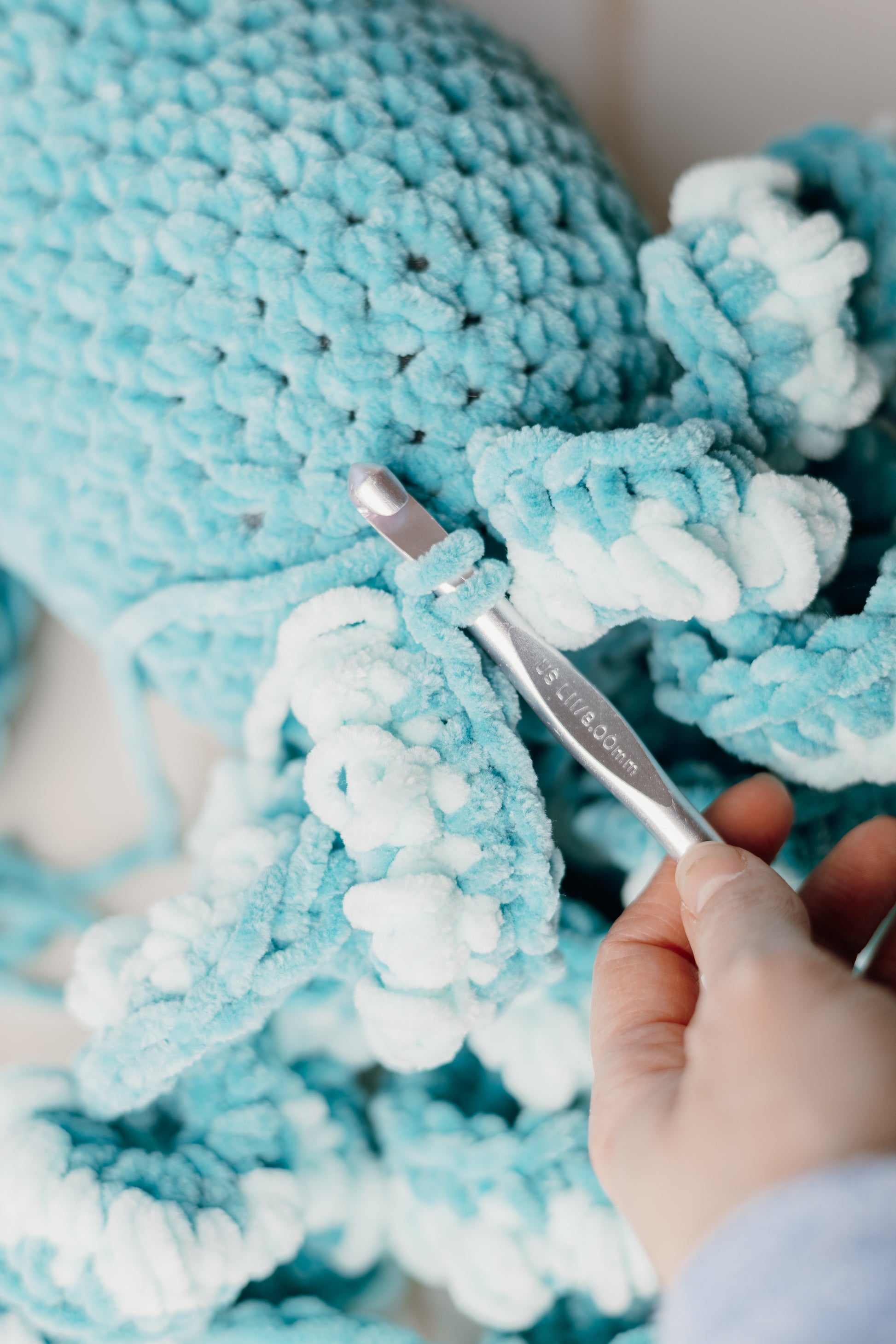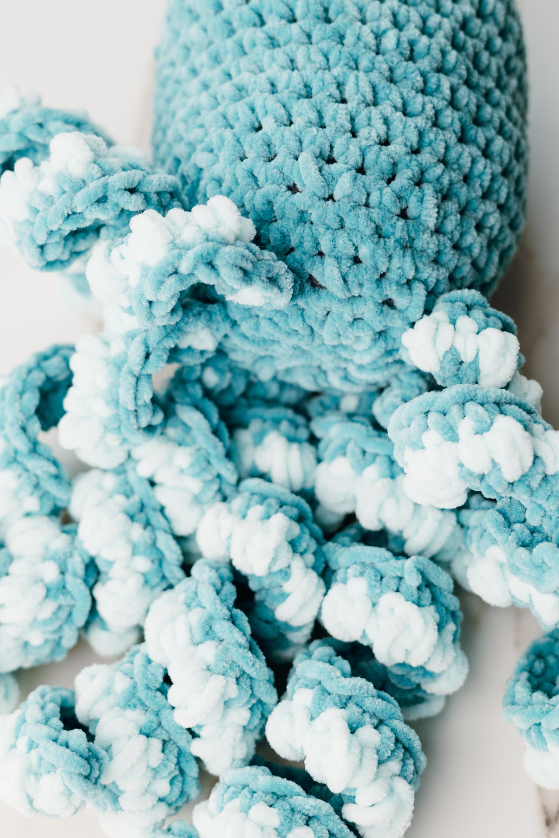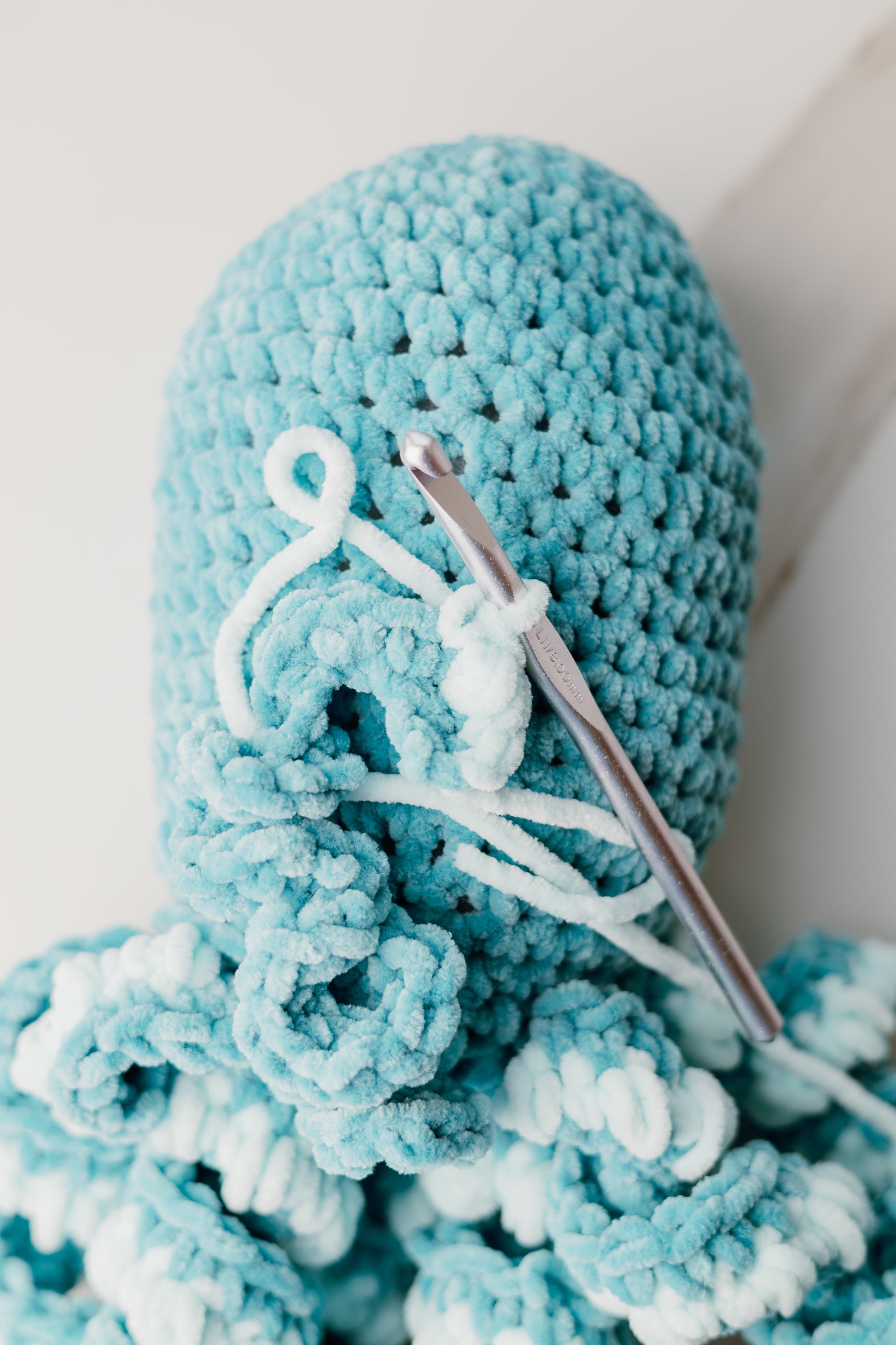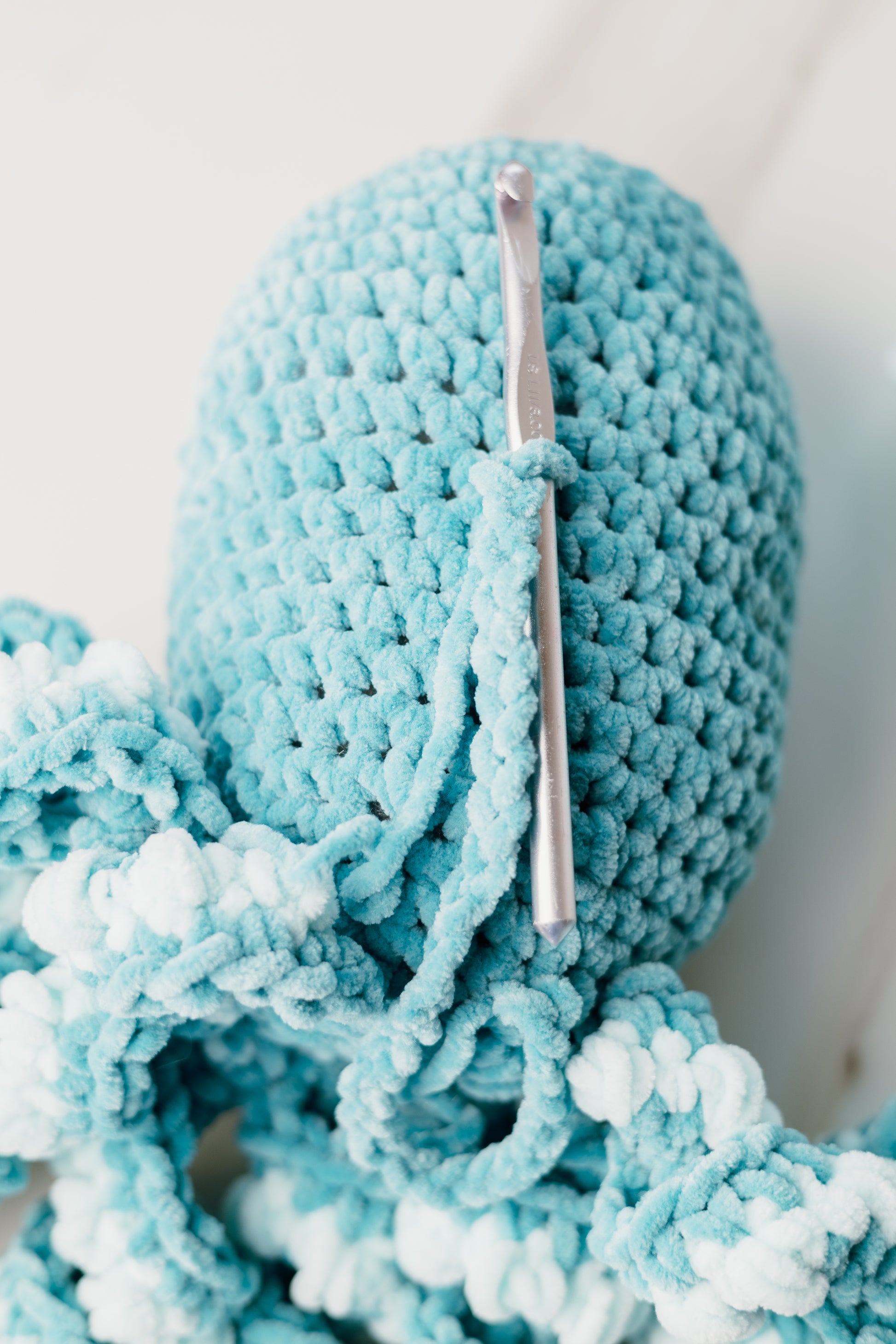 This crochet pattern is great for beginners. It includes detailed instructions and pictures on how to crochet this adorable, squishy, soft, sweet octopus plushie.