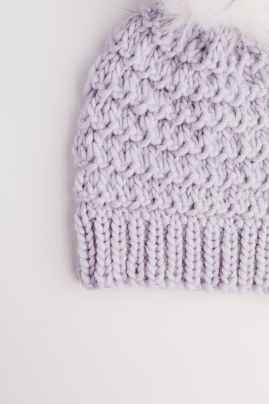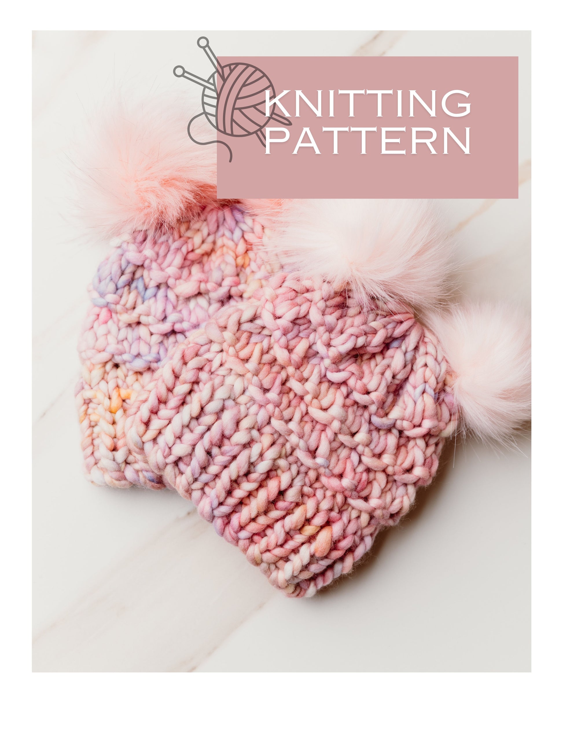 This knit baby hat pattern is great for beginners. It includes only a 0-3 month size. It is an easy work up and includes instructions for a beanie and pom pom placement.